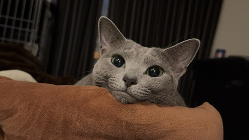 ベッドのフチに顎を乗せるネコ。ほんまに可愛すぎる