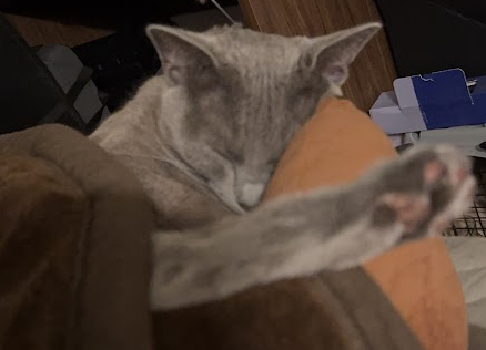 頑張って目をつむっている小さい猫のリジー