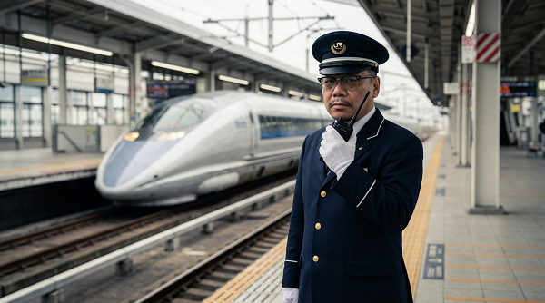 今回、駅員風とした理由だが、おとといの帰路で電車遅延に遭遇した際、車内アナウンスが非常に的確で、ぎゅうぎゅう詰めの状況でも不思議と落ち着いて耐えられた。その印象が強く残っており、今回のコラムで模してみた。