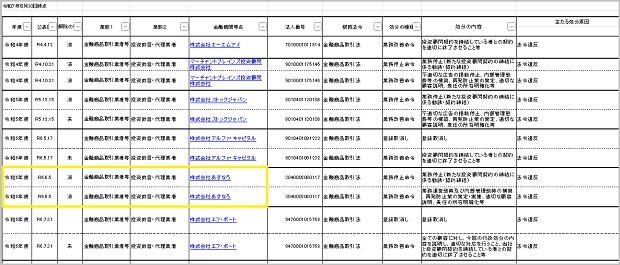 [金融庁サイト] https://www.fsa.go.jp/status/s_jirei/kouhyou.html