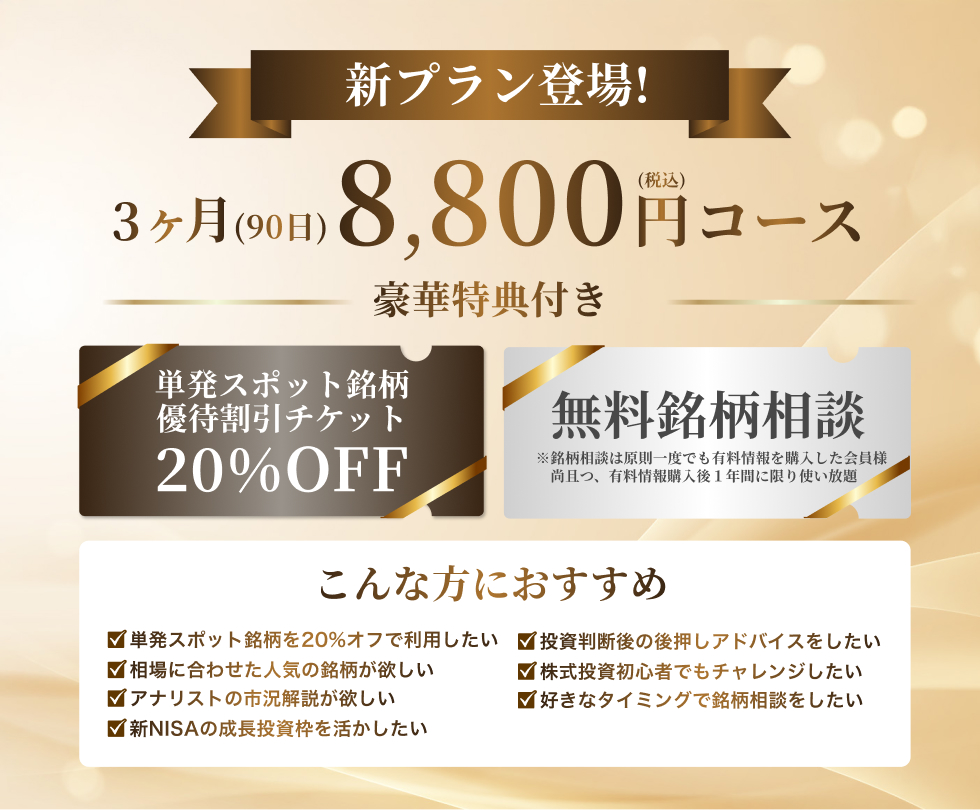 また、上記は売買助言なしの無料紹介銘柄です。必ずしもこのような結果や利益を得られるものではございませんのでご理解いただいた上ご登録ください。